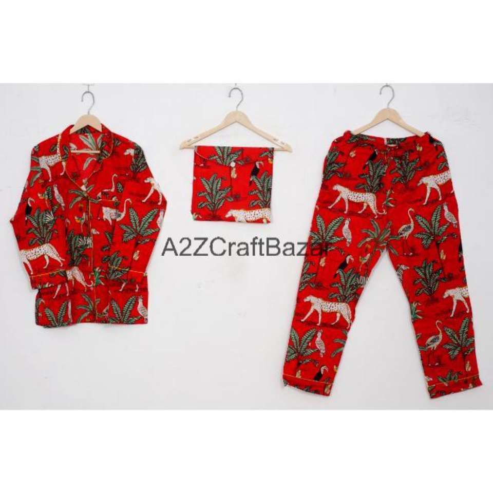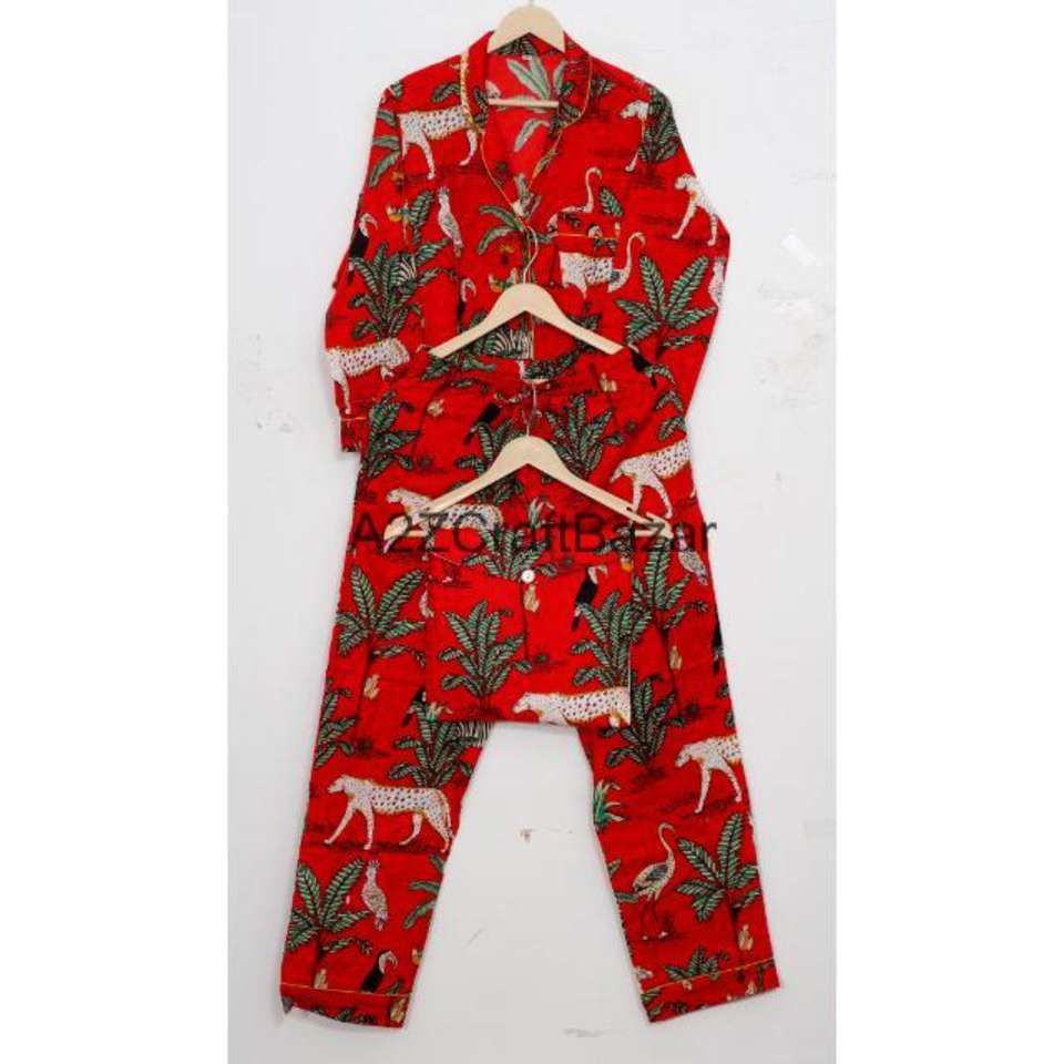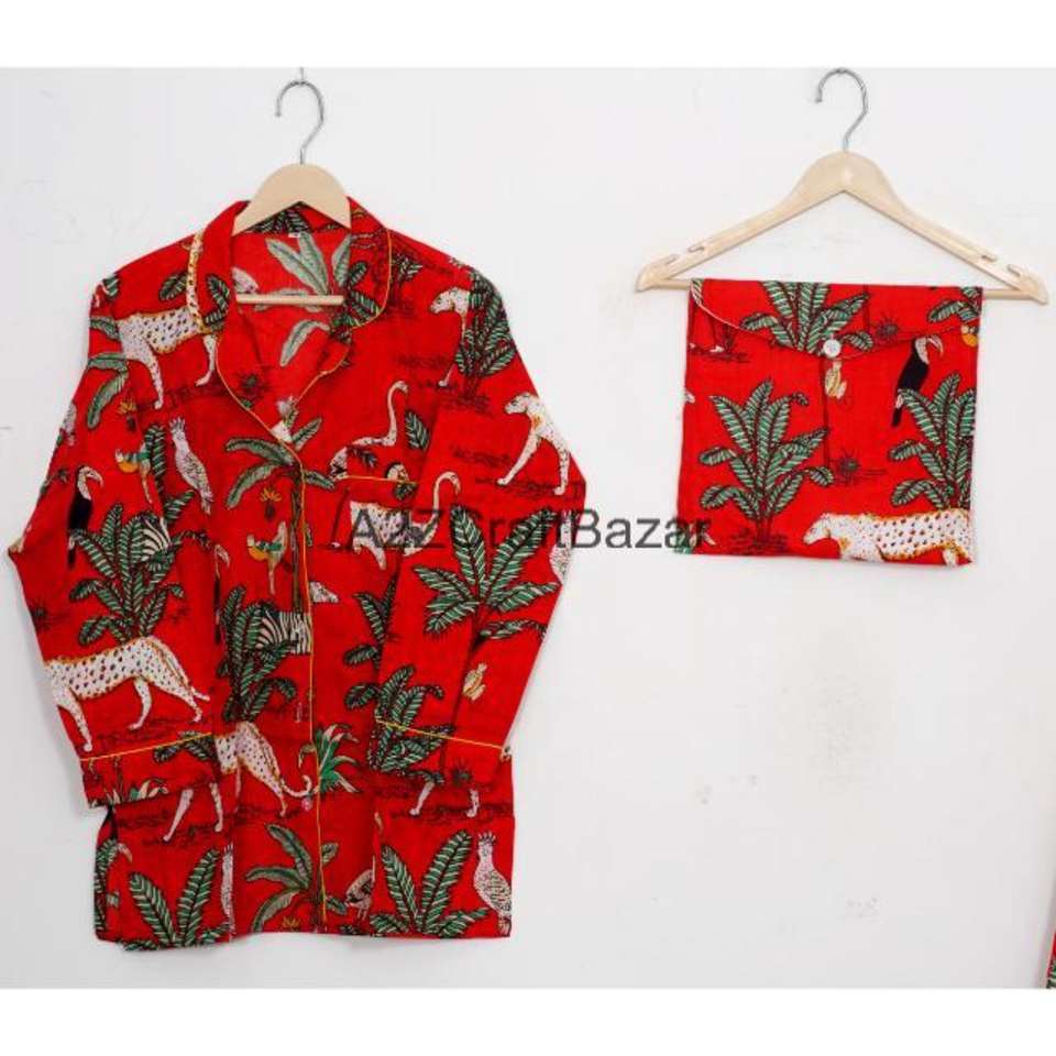 ชุดนอนผู้หญิงพิมพ์ลายบล็อกอินเดียทำมือ - ชุดผ้าฝ้ายแท้ 100% พรีเมียม สำหรับฤดูใบไม้ผลิ/ฤดูร้อน