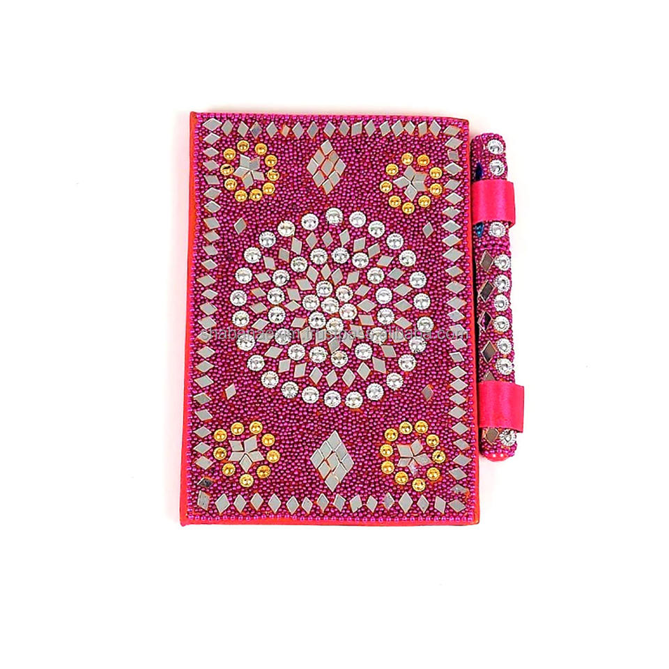 สมุดบันทึกทำมือจากอินเดีย ประดับกลิตเตอร์ พร้อมปากกาประดับลูกปัด ชุดของขวัญ ของที่ระลึกน้ำหนักเบา ทนทาน เหมาะสำหรับจดบันทึกประจำวัน