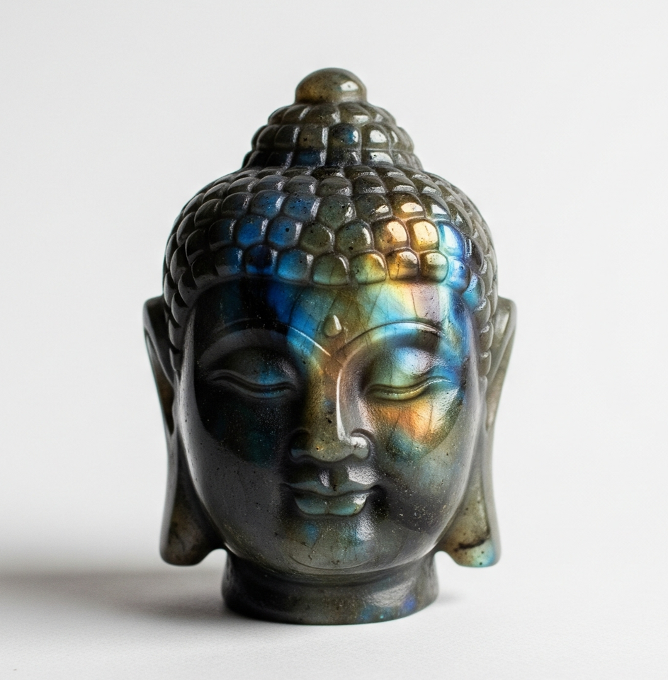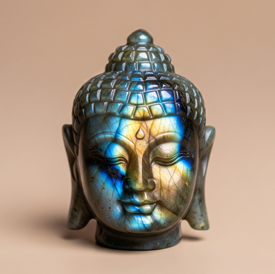 รูปปั้นพระพุทธรูปทำด้วยมือสไตล์อินเดียแกะสลักพลอยลาบราดอไรต์งานแกะสลักทางศาสนางานหัตถกรรมหินกึ่งมีค่าหินธรรมชาติ