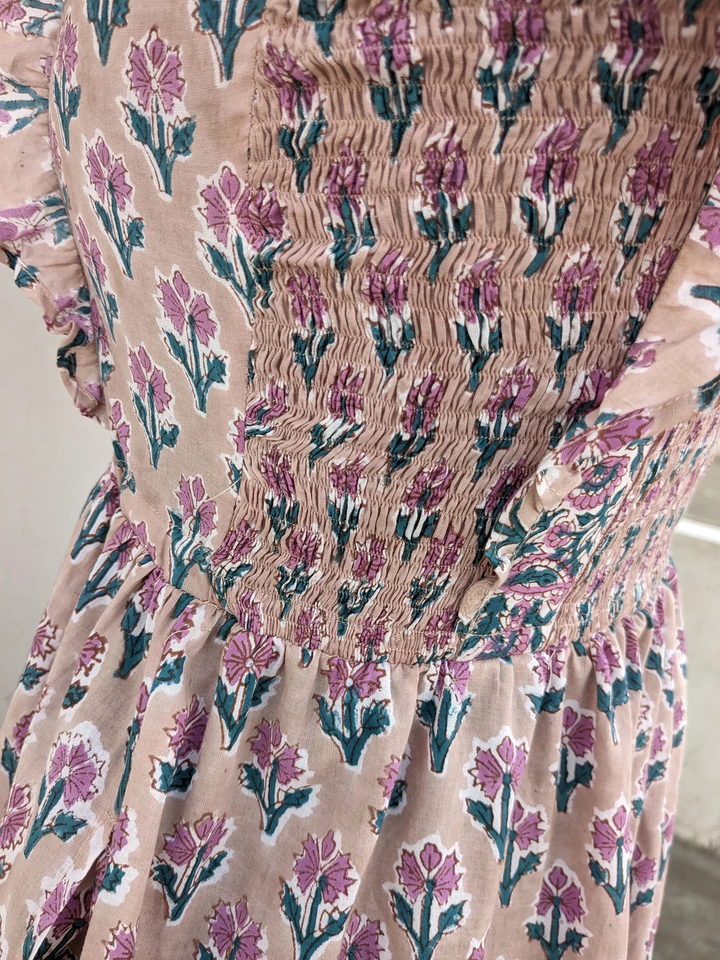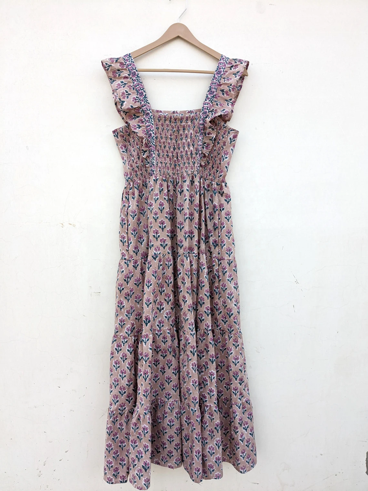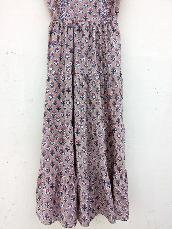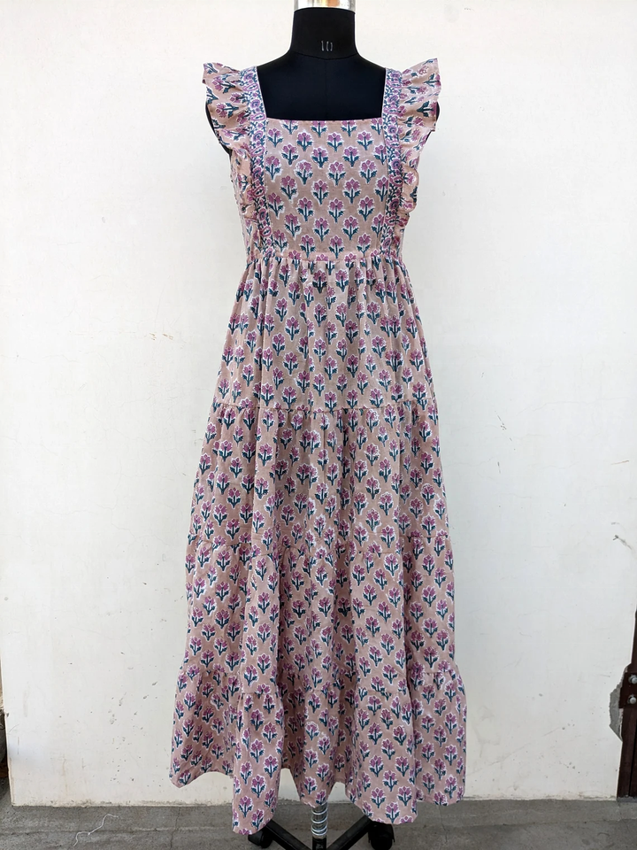 ชุดเดรสยาวสไตล์อินเดียทำมือ พิมพ์ลายด้วยมือบนผ้าฝ้าย ทอเป็นชั้นๆ ระบายอากาศได้ดี คอทรงเหลี่ยม สำหรับผู้หญิง