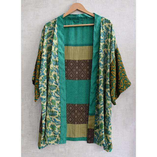 ชุดกิโมโนผ้าไหมพิมพ์ลายดอกไม้สไตล์อินเดีย ทำมือ ระบายอากาศได้ดี ตกแต่งด้วยผ้าปะติดปะต่อ สวมใส่สบาย เหมาะสำหรับฤดูใบไม้ร่วง ไซส์ใหญ่ ความยาวระดับเข่า