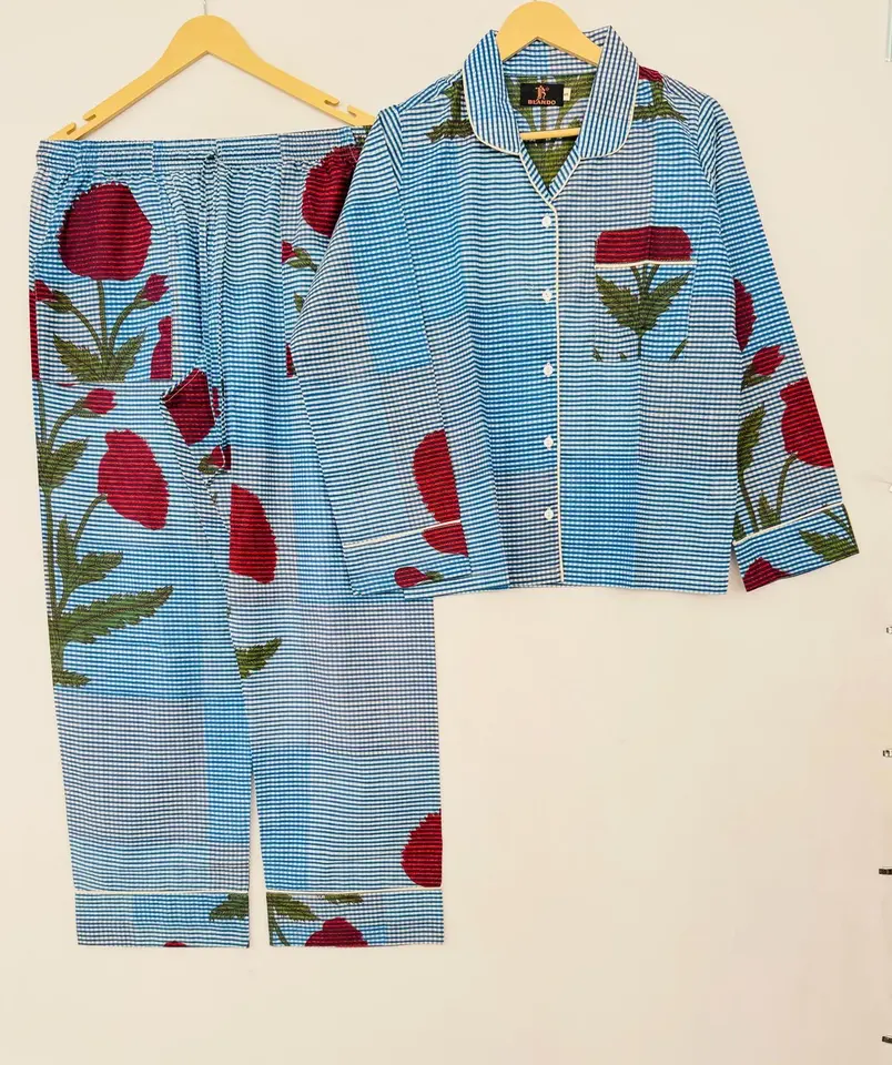 ชุดนอนผ้าฝ้ายแท้ของผู้หญิงชุดนอนผ้าคอตตอนแท้พิมพ์ลายดอกไม้ชุดใส่สบาย
