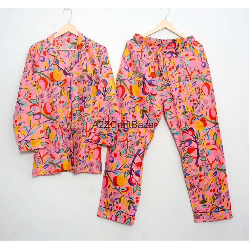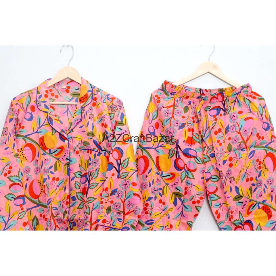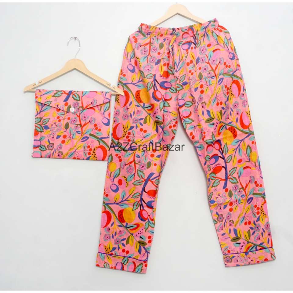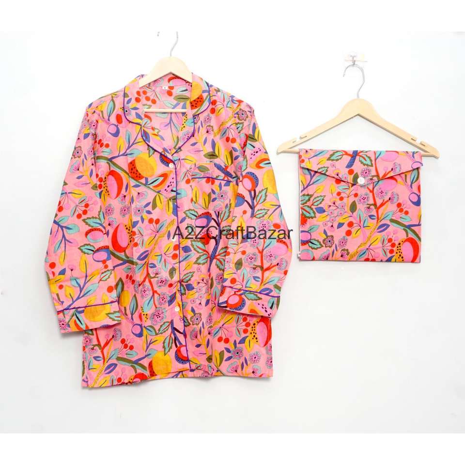 ชุดนอนผ้าฝ้ายอินเดียทำมือ ลายดอกไม้ ผ้าเนื้อนุ่ม ระบายอากาศได้ดี พร้อมเชือกผูกเอว เหมาะสำหรับใส่ตอนเช้า