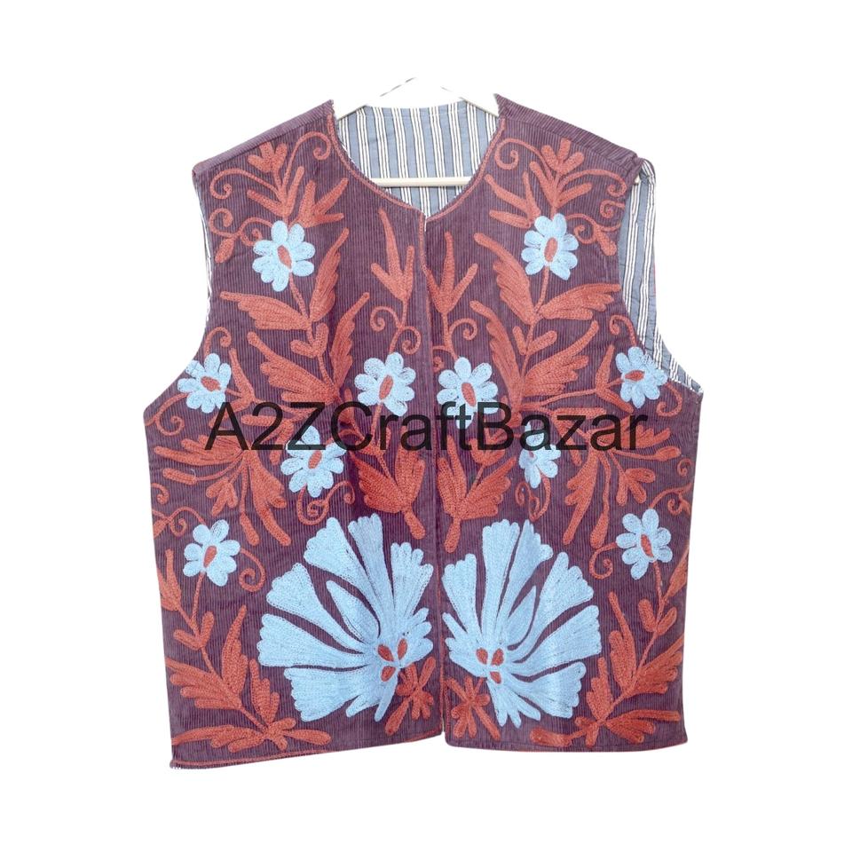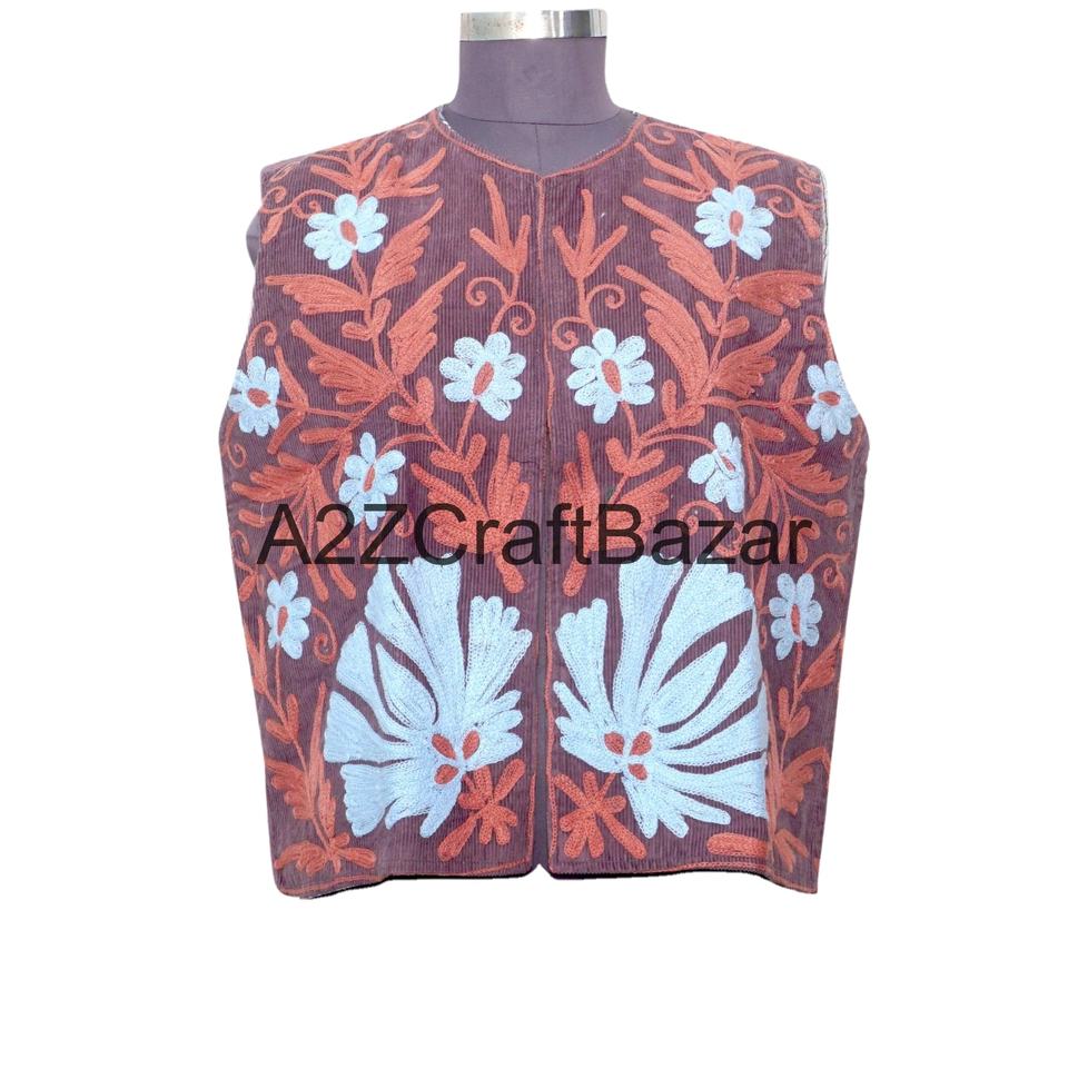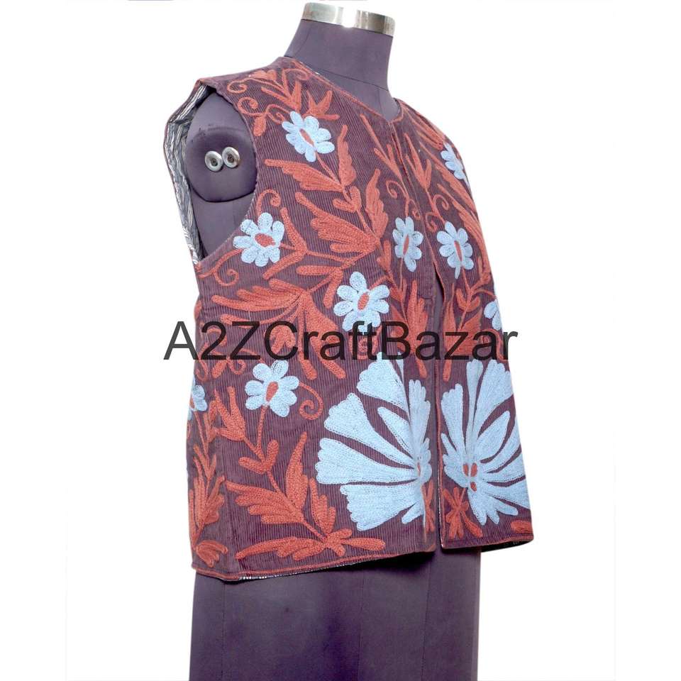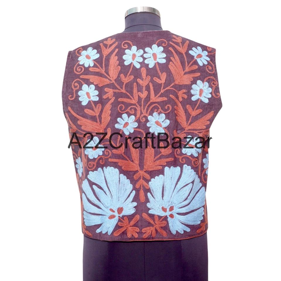 เสื้อกั๊กผู้หญิงทำมือสไตล์อินเดียลายซูซานี เสื้อคลุมแบบดั้งเดิม แจ็คเก็ตซูซานีแบบไม่มีแขน สไตล์โบฮีเมียน ผ้าฝ้าย 100% สำหรับฤดูหนาว พร้อมโลโก้