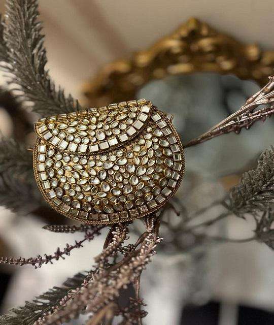 กระเป๋าคลัทช์งานฝีมือสไตล์วินเทจอินเดียประดับด้วยด้ายโลหะและโซ่ลูกปัดแบบโมเสก เหมาะสำหรับงานเลี้ยงตอนเย็น งานแต่งงาน ของขวัญวันเกิด