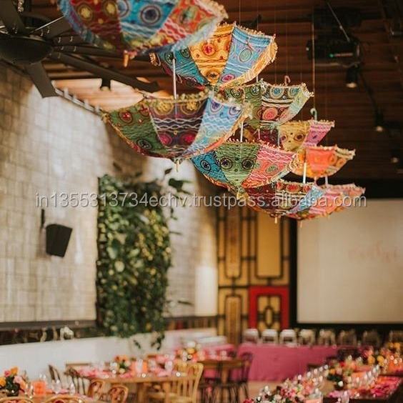 ร่มงานแต่งงานอินเดียทำมือ ดีไซน์ดอกไม้สไตล์โบฮีเมียน พับได้ เปิดปิดด้วยมือ ใช้ตกแต่งภายในและภายนอก ปักลายกระจก