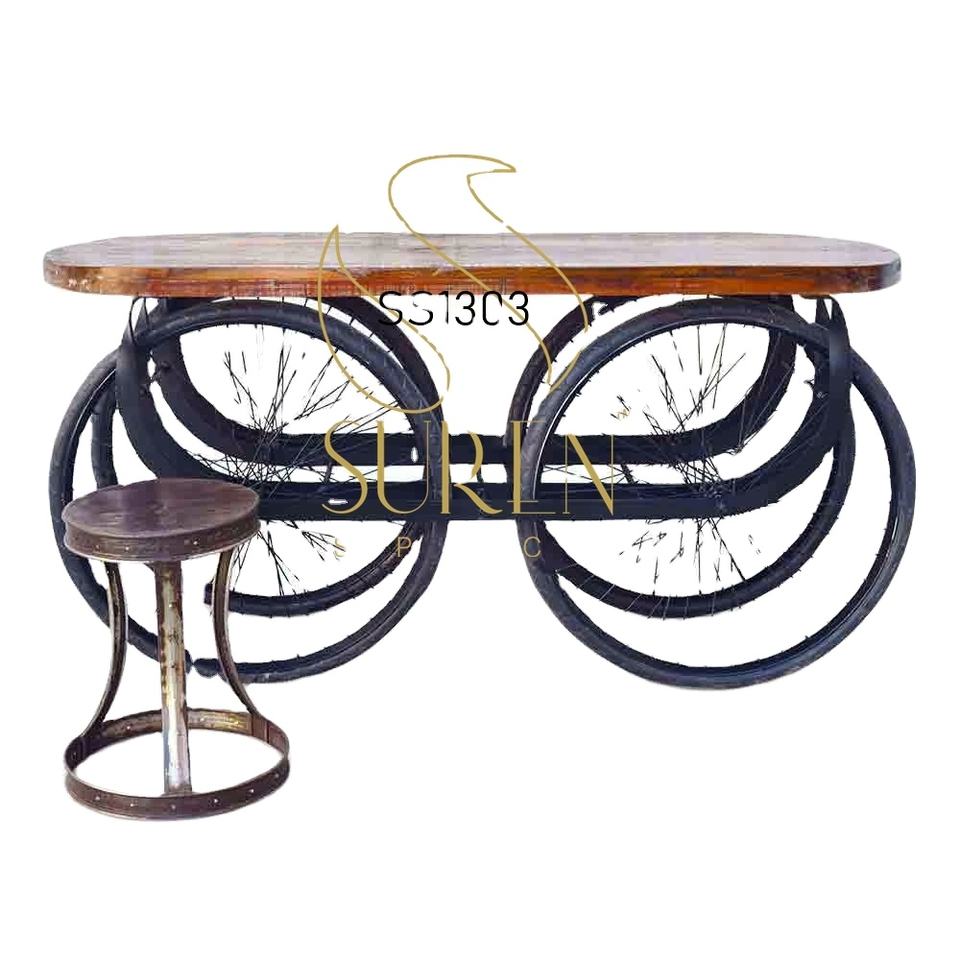 รถเข็นไม้เหล็กทำมือสไตล์อินเดียทันสมัย แรงบันดาลใจจากถนน สำหรับโรงแรม รีสอร์ท ห้องนั่งเล่น หรือห้องครัว