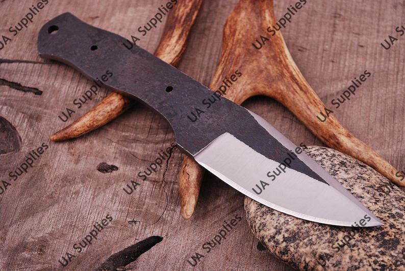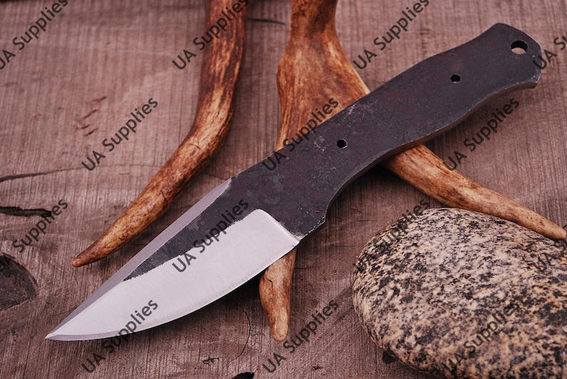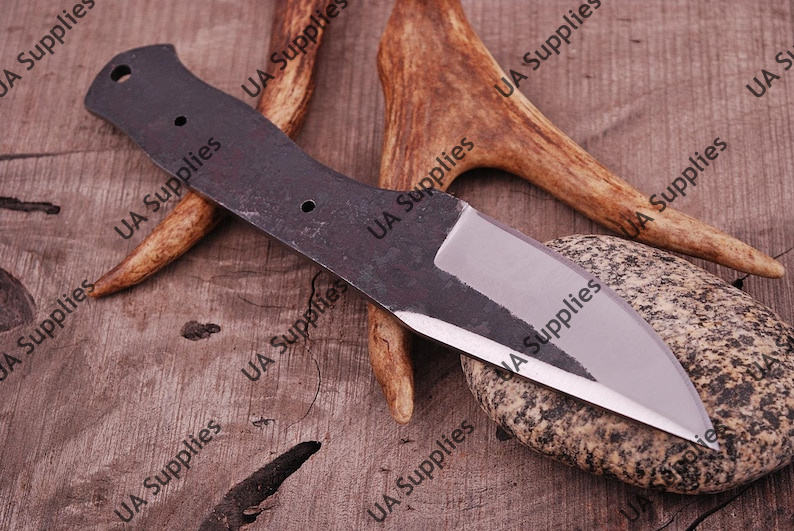 มีดทำมือสไตล์อินดัสเทรียล DIY เหล็กคาร์บอน 1095 ด้ามเหล็กดามัสกัส ปลายมีดแบบ Drop Point สำหรับใช้งานทั่วไป ตั้งแคมป์ กิจกรรมกลางแจ้ง และแล่เนื้อ