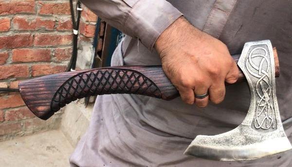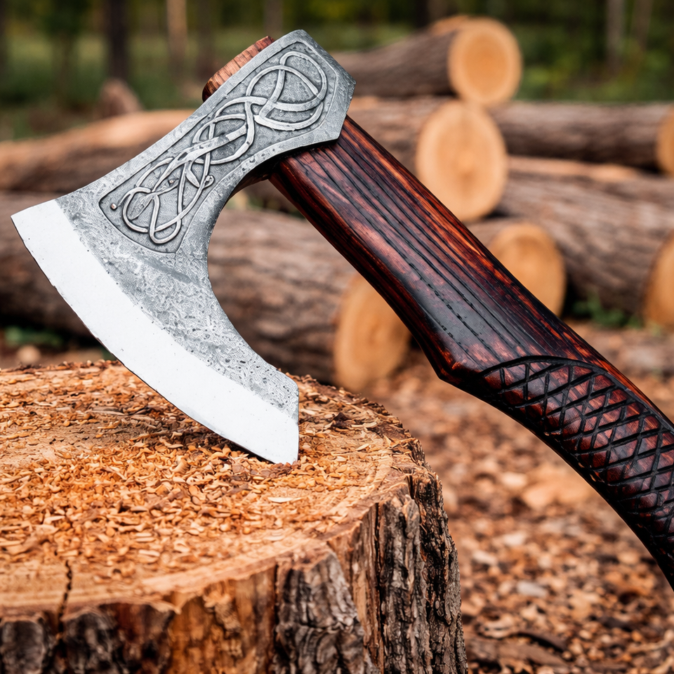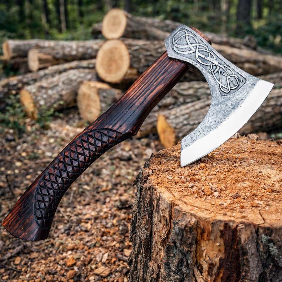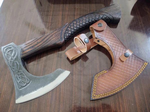 ขวานงานฝีมือเกรดอุตสาหกรรม ใบมีดเหล็กกล้าคาร์บอนสูง ด้ามไม้ ปลอกหนัง รับผลิตตามแบบ OEM