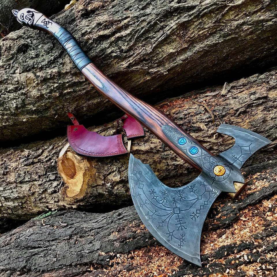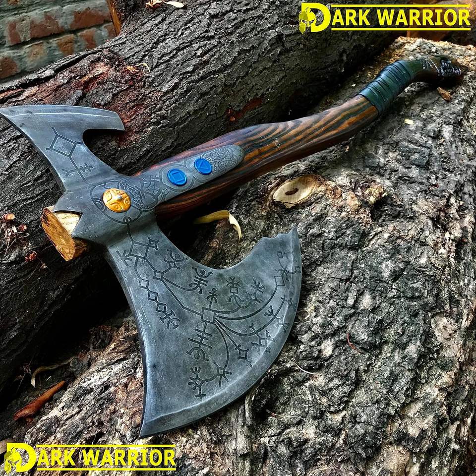 ขวานทอมฮอว์กเลวีอาธาน ทำมือจากเหล็กกล้าไร้สนิมอุตสาหกรรม รุ่นใช้งานได้จริง ขนาดเท่าของจริง แรงบันดาลใจจาก GOW อัปเกรดเต็มรูปแบบ