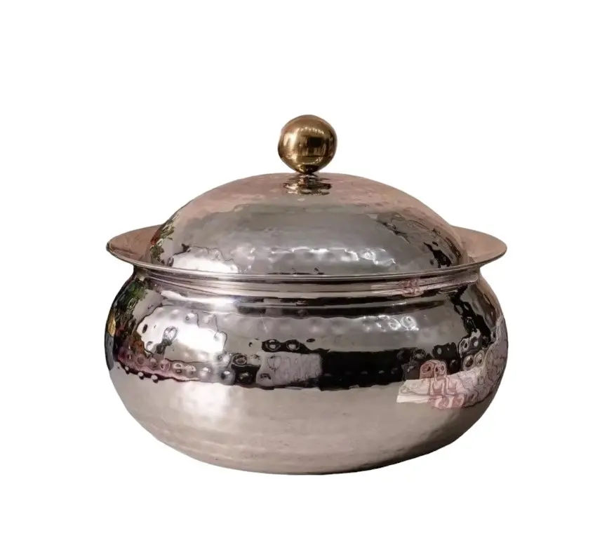 หม้อโลหะหุ้มฉนวนทำด้วยมือพร้อมไข่มุกแม่และที่จับสแตนเลสเหมาะสำหรับอาหารอาหรับและงานแต่งงานกลางตะวันออก