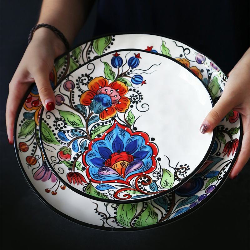 ชุดจานสเต็กโบฮีเมียน6ชิ้นพอร์ซเลนแบบไม่สม่ำเสมอทำด้วยมือ