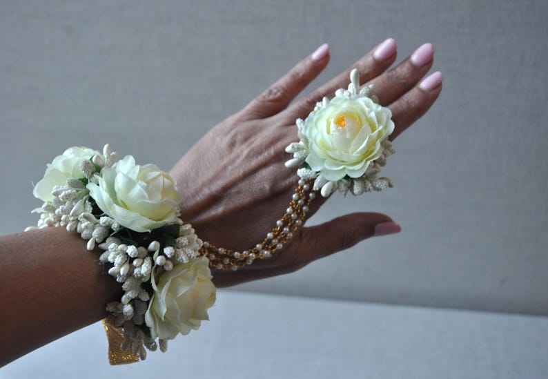 ชุดเครื่องประดับดอกไม้สำหรับงานแต่งงานแบบอิสลามทำด้วยมือพร้อมต่างหูสร้อยคอไข่มุกหลายชั้นและ Tikka