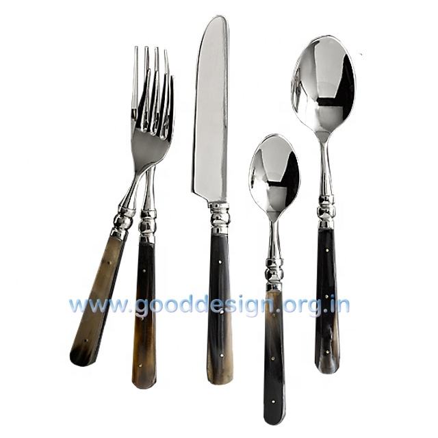 ชุดช้อนส้อมสแตนเลสแบบพกพา สไตล์อิตาลี ทำด้วยมือ ด้ามจับทำจากทองเหลืองเคลือบเรซิ่นสีขาว/ดำ ขัดเงาแบบกระจก ดีไซน์วินเทจสุดหรู