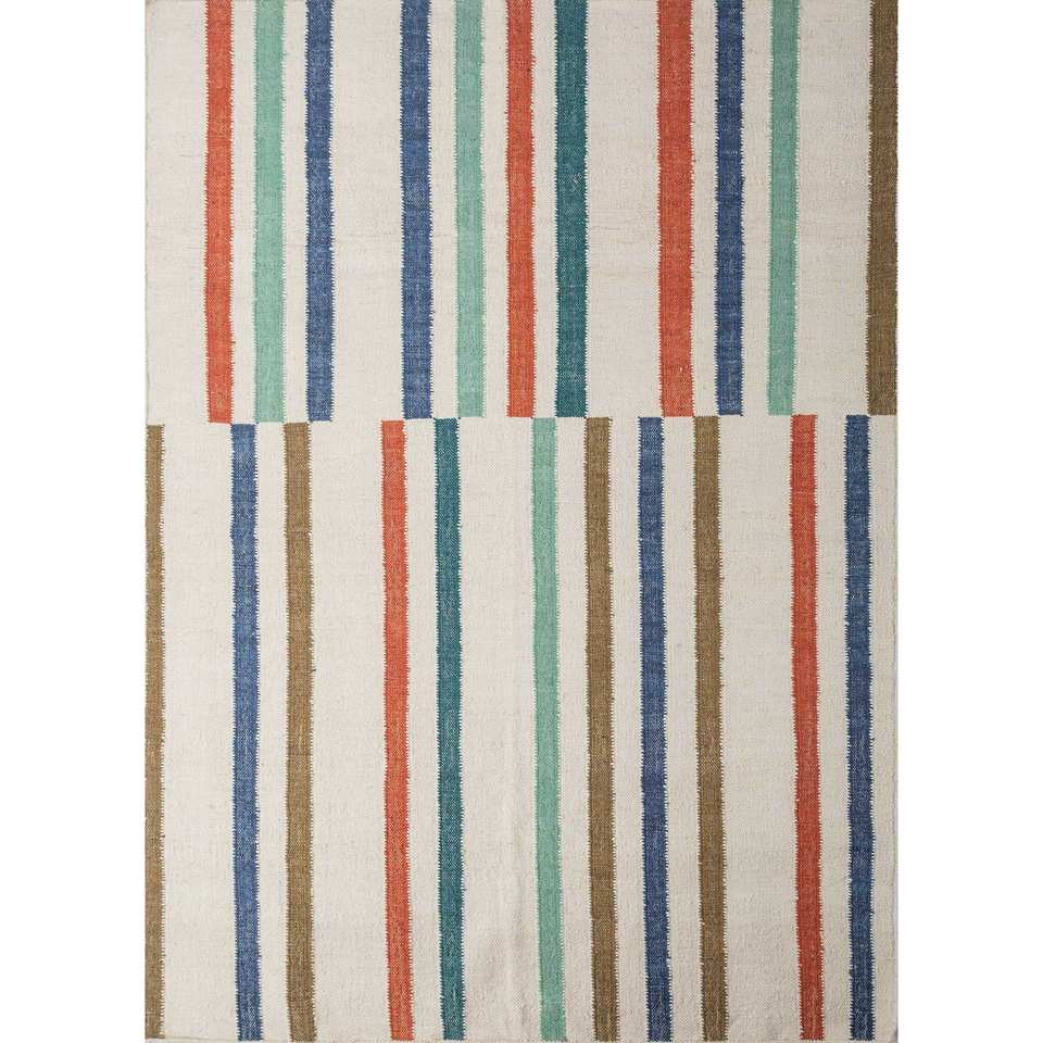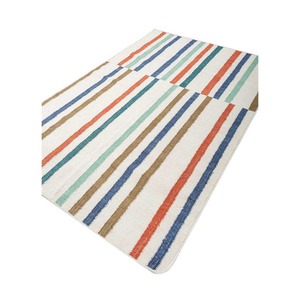 พรมขนสัตว์ทอมือลายทางสีงาช้าง รุ่น Adwl-1311 รูปทรงสี่เหลี่ยมผืนผ้า ขนาด 9x12 ฟุต ลายตารางหมากรุก สำหรับห้องนั่งเล่น ห้องนอน ใช้ในบ้าน