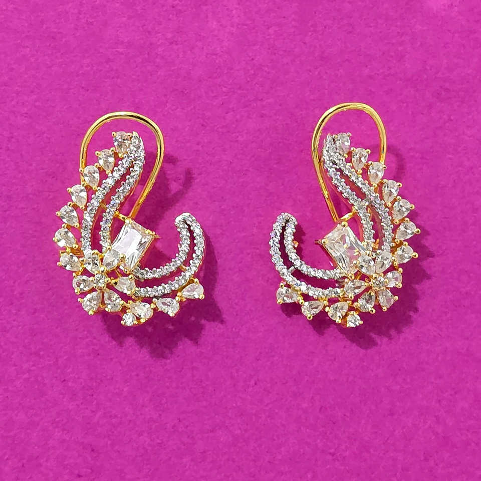 เครื่องประดับทำด้วยมือในอินเดียลูกบาศก์เซอร์โคเนียต่างหูคลาสสิกชุบโรเดียม2โทน