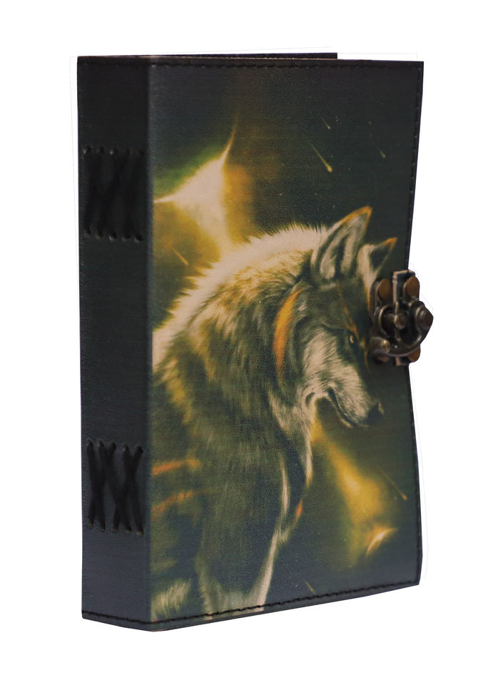วารสารที่ทำด้วยมือการออกแบบวินเทจหมาป่าหนังแท้พิมพ์ลาย120 deckle EDGE สมุดบันทึกกระดาษโบราณและสมุดสเก็ตช์พร้อมโลหะ C LOCK