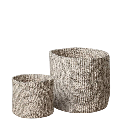 ตะกร้าสานปอกระเจาทำมือ ชุดคู่ สำหรับจัดเก็บของในบ้านและกระถางต้นไม้ตั้งพื้น