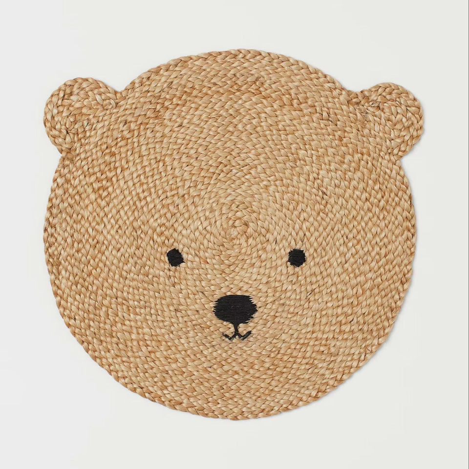 พรมปอกระเจาหมีทำด้วยมือเสื่อปูพื้นทอธรรมชาติรูปสัตว์น่ารักสำหรับห้องเด็กการตกแต่งสถานรับเลี้ยงเด็กพรมหมีโบฮีเมียนเป็นมิตรต่อสิ่งแวดล้อม