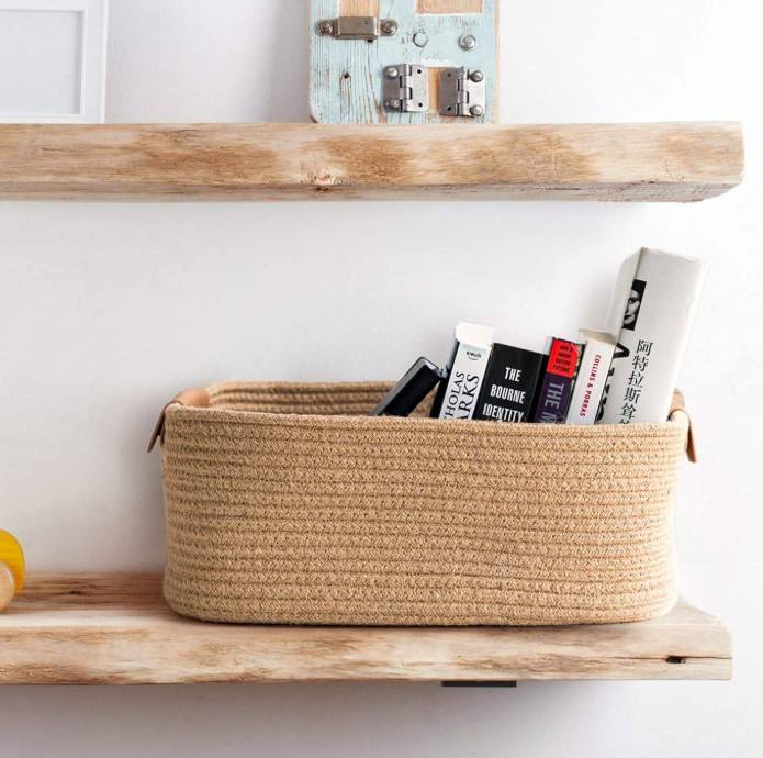 ตะกร้าใส่ของทำมือหญ้าทะเลทำจากปอกระเจาเป็นมิตรกับงบประมาณของตกแต่งเฟอร์นิเจอร์สำหรับห้องนั่งเล่นและห้องครัว