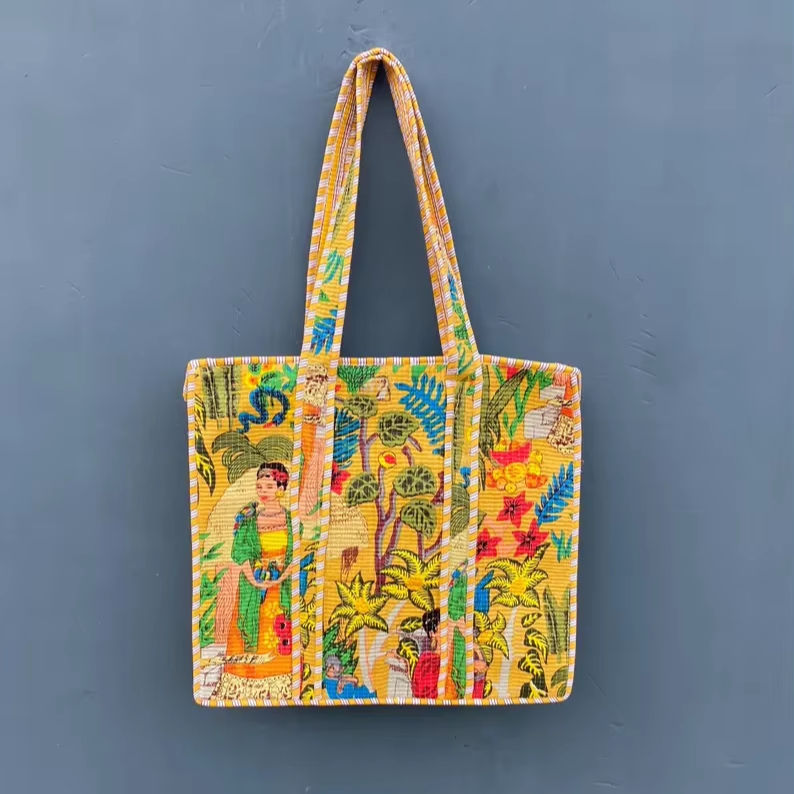 กระเป๋าโท้ทผ้าฝ้ายควิลท์งานแฮนด์เมดแบบคันธา ปรับแต่งได้ ขนาดใหญ่ สไตล์โบโฮ สำหรับไปเที่ยวชายหาด ปักลาย ซิปแบบพกพา สำหรับฤดูร้อนและฤดูใบไม้ร่วง