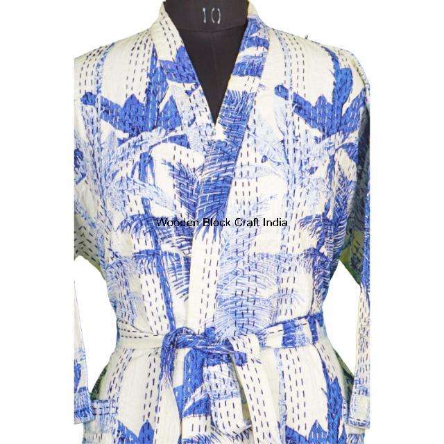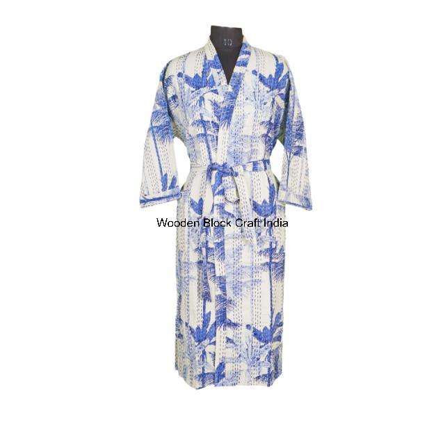ชุดคลุมกิโมโนผ้าคันธาทำมือสำหรับผู้หญิง ผ้าฝ้ายออร์แกนิคยาว รีไซเคิล แบบสองด้าน ผ่านกระบวนการซัก ระบายอากาศได้ดี แห้งเร็ว