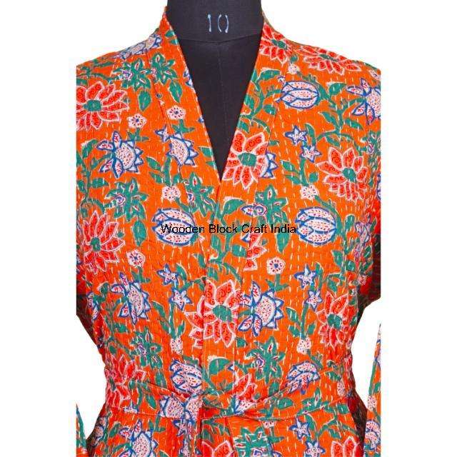 เสื้อคลุมกิโมโนผ้าฝ้ายถักแบบควิลท์ลายคันธา ทำมือ ระบายอากาศได้ดี แบบสองด้าน พร้อมเข็มขัด ลายเพ้นท์มือ เสื้อคลุมยาวสำหรับผู้หญิง ชุดนอนฤดูร้อน