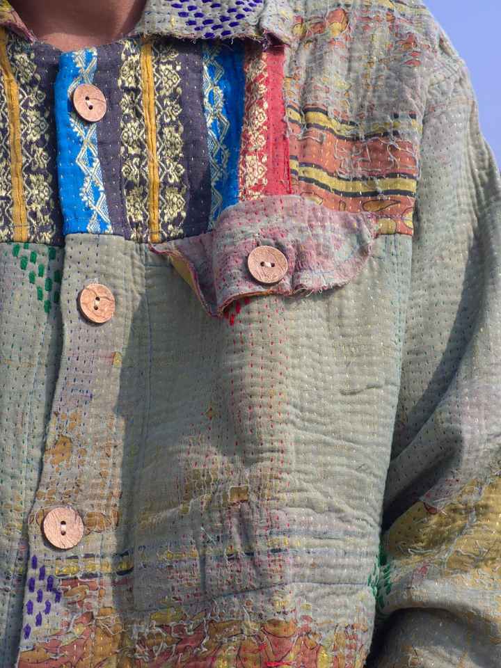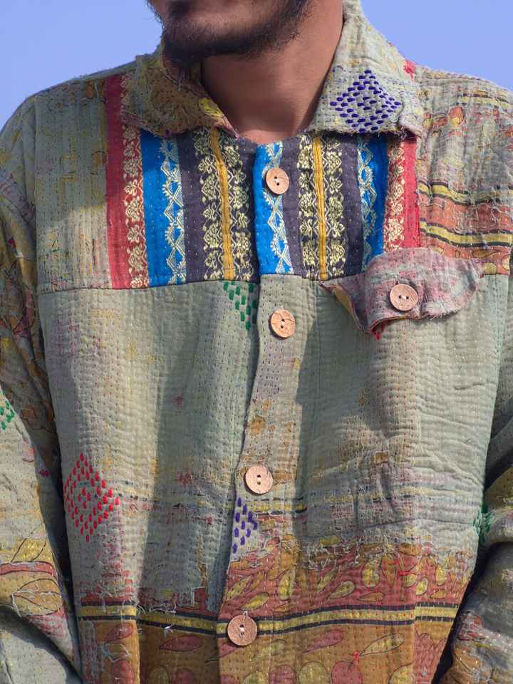 เสื้อเชิ้ตผู้ชายลำลองแขนยาวถักนิตติ้งลายดอกไม้ผ้าฝ้าย 100% ทรงหลวมสไตล์ฮิปฮอปสำหรับฤดูหนาว แบรนด์แฮนด์เมดคันธา VIRATRA IMPEX ไซส์พลัส