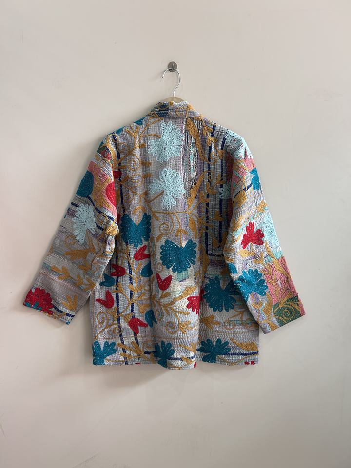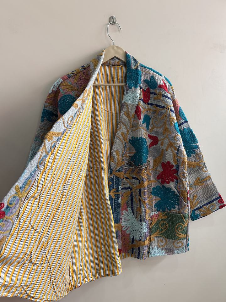 เสื้อคลุมกิโมโนปักลายซูซานีแบบวินเทจ งานแฮนด์เมดสไตล์คันธา เสื้อโค้ทแบบดั้งเดิมของอินเดีย