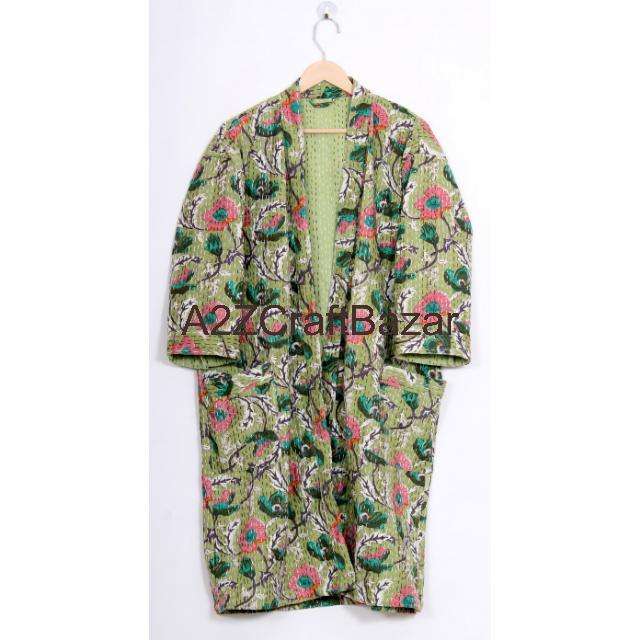 เสื้อคลุมสั้นผู้หญิงลายดอกไม้ งานฝีมือแบบกันธา คอวี ผูกเชือก ผ้านุ่ม อุ่น เหมาะสำหรับฤดูหนาว ฤดูใบไม้ร่วง ฤดูใบไม้ผลิ และใส่อาบน้ำ