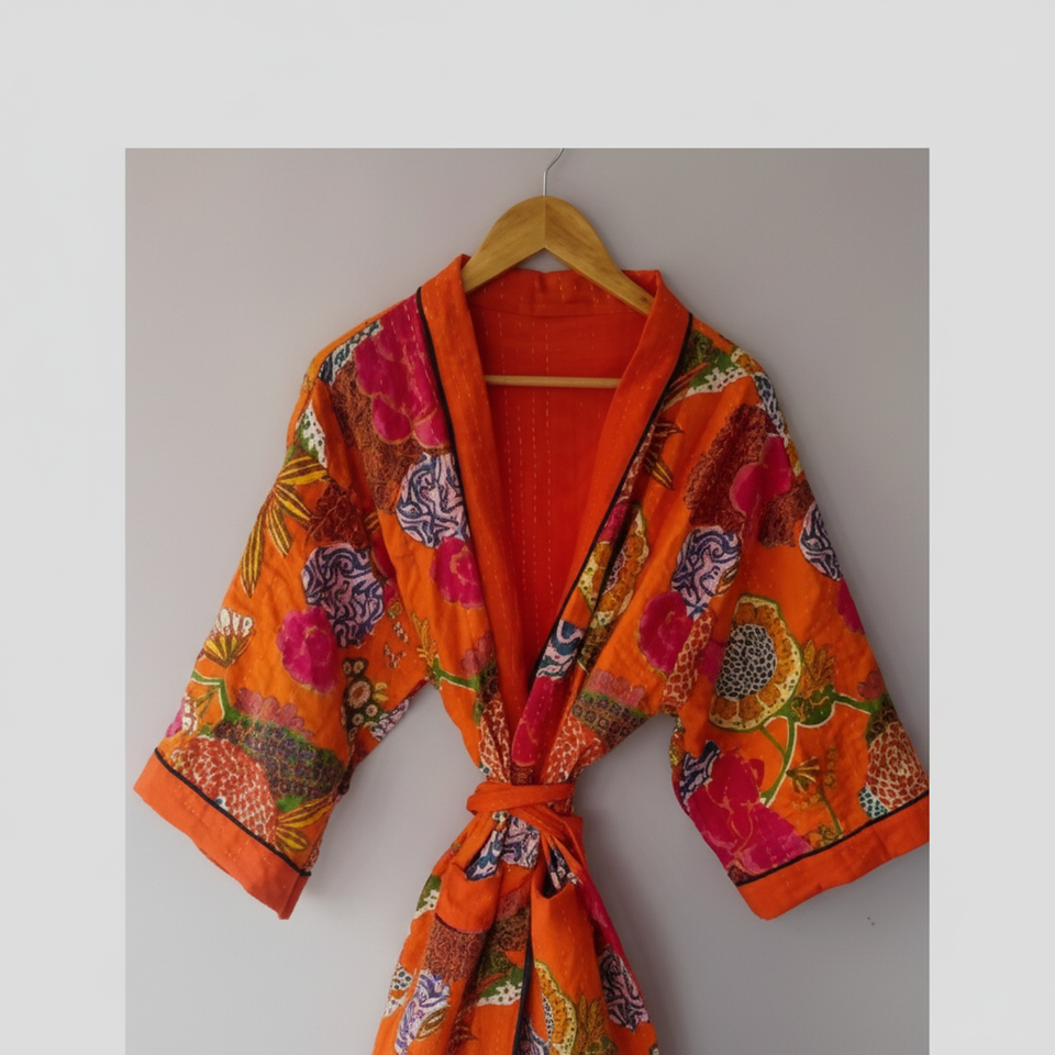 ชุดคลุมกิโมโนงานฝีมือแบบคันธา วินเทจ สำหรับผู้หญิง ชุดคลุมผ้าควิลท์ทำมือ ชุดคลุมผ้าปะติดปะต่อสำหรับผู้หญิง ชุดคลุมผ้าฝ้ายสำหรับผู้หญิง