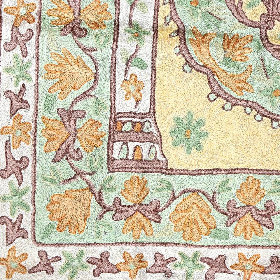 Kashmiri jainemaz พรมปูสวดมนต์ทำด้วยมือขนแกะแท้ดีไซน์อิสลาม