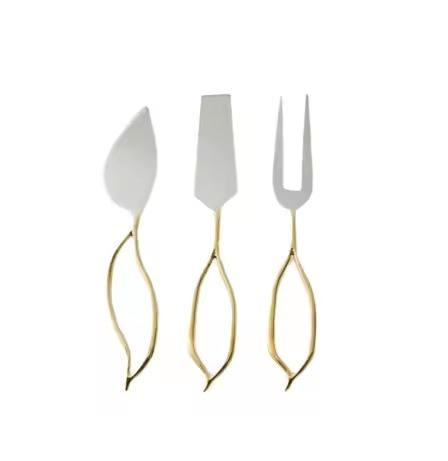 ชุดมีดชีสสแตนเลสทำมือ ดีไซน์หรูหราทันสมัย เคลือบทอง ใช้กับเครื่องล้างจานได้ อุปกรณ์ครัว
