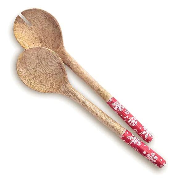 ชุดช้อนไม้สำหรับเสิร์ฟทำด้วยมือ2ชิ้นทำจากไม้ธรรมชาติเหมาะสำหรับการทำอาหารและห้องครัวการรับประทานอาหารที่ทันสมัย