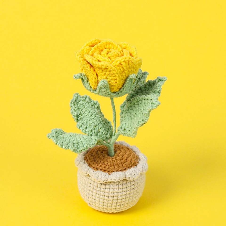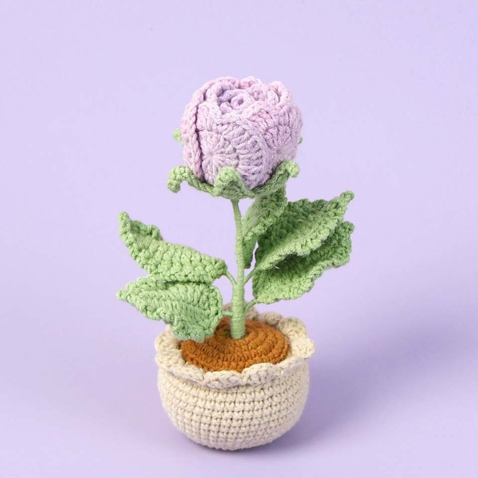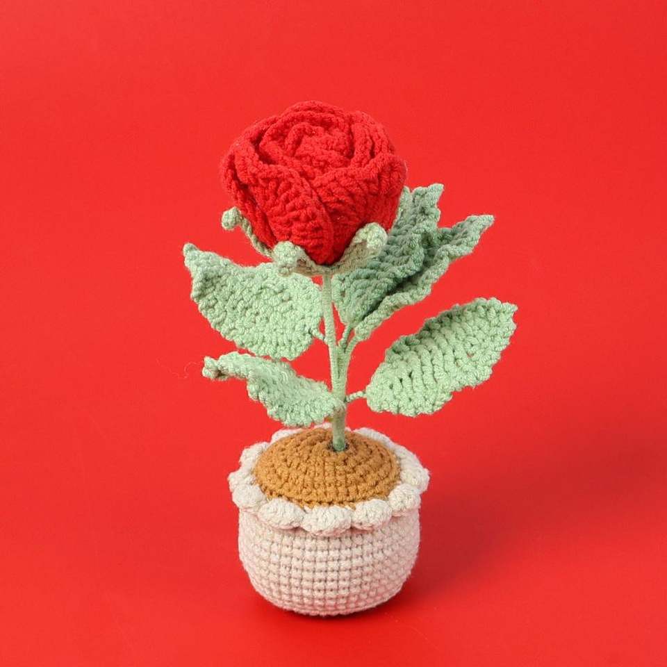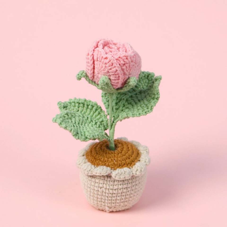 กระถางดอกกุหลาบถักโครเชต์ทำมือจากไหมพรม สำหรับตกแต่งวันพ่อ วันอีสเตอร์ วันคริสต์มาส วันฮาโลวีน วันรับปริญญา ดอกไม้ประดิษฐ์
