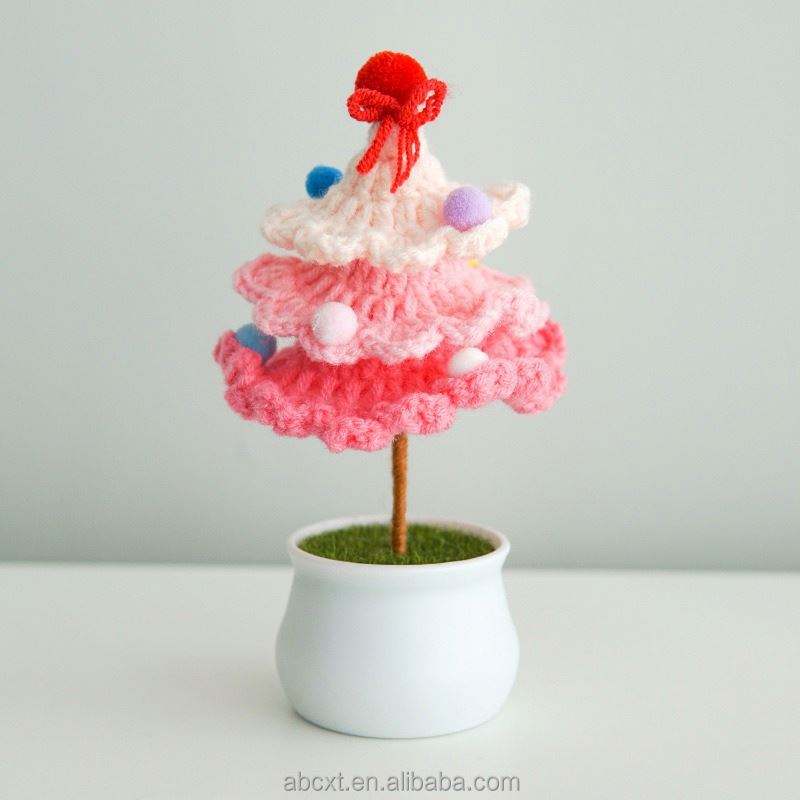 ต้นคริสต์มาสถักมือในกระถางดอกไม้หลากสี ของขวัญคริสต์มาสตกแต่งสำหรับเพื่อนและครอบครัว