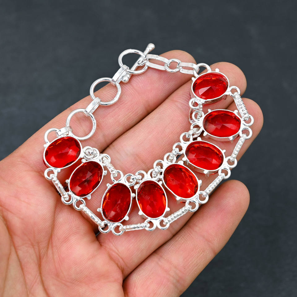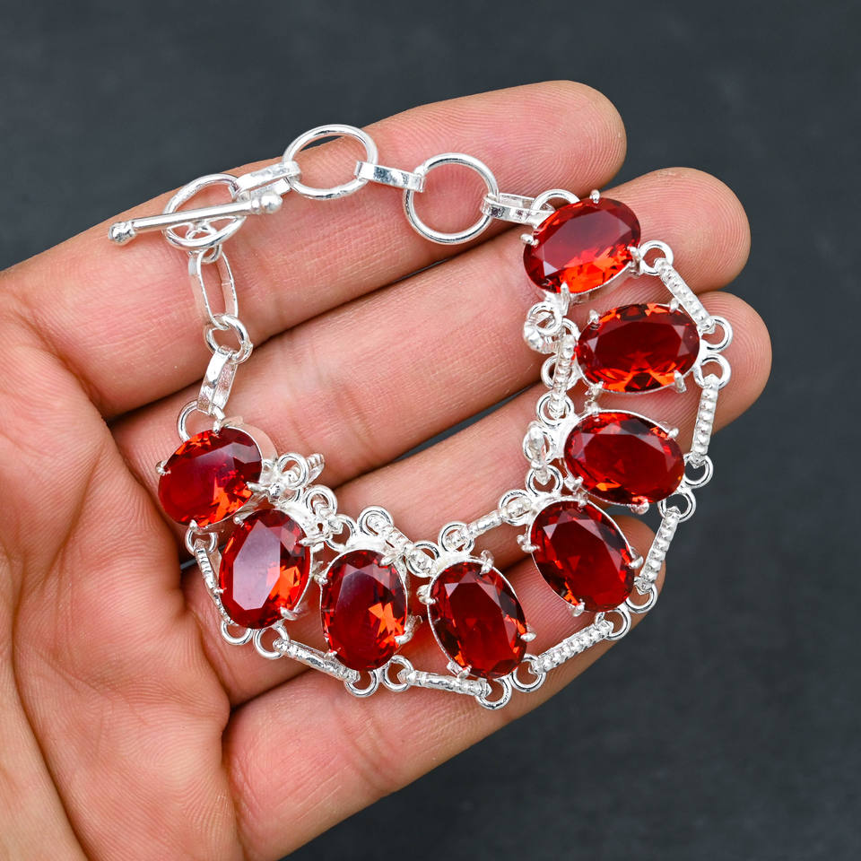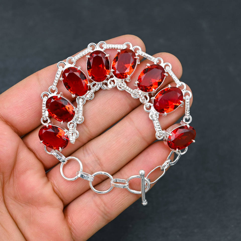 สร้อยข้อมือพลอยโกเมนสีแดงจากแล็บแฮนด์เมดได้รับการรับรองจาก IGI เงินชุบ925ของขวัญแต่งงานสไตล์หรูหราสำหรับผู้หญิง