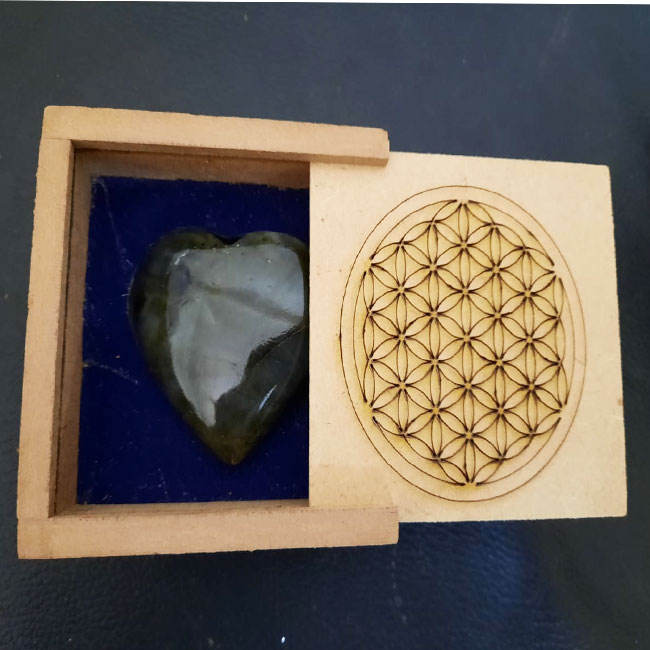 Handmade Labradorite Heart Gemstone Agate Quartz Chakra Healing Gift Box Engraved Wooden Fency Box Reiki Healing Metaphysical