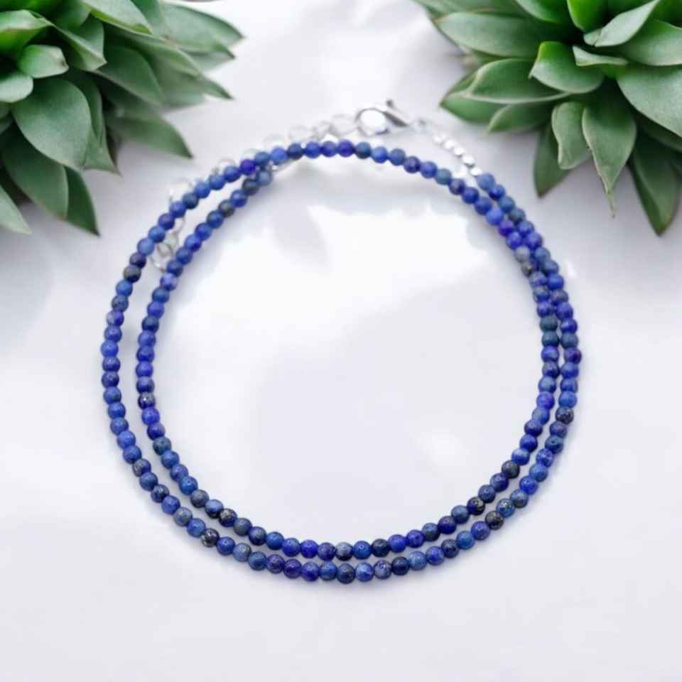 สร้อยคอลูกปัด lapis Lazuli ทำด้วยมือ2มม.-3มม. พลอยสีฟ้าธรรมชาติสร้อยข้อมือชุบทองเครื่องประดับแฟชั่นขายส่งเป็นจำนวนมาก