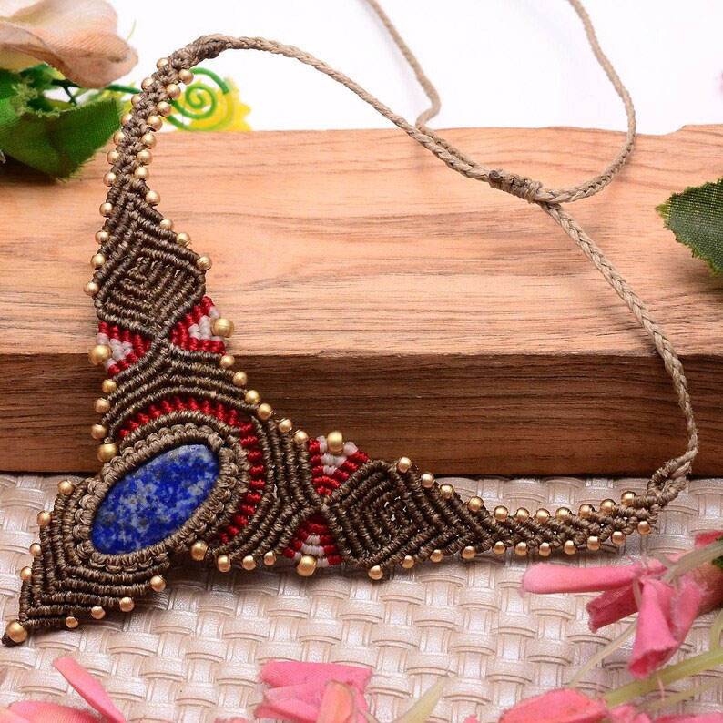 สร้อยคอทำมือจากโลหะผสมสังกะสีประดับหยกแบบมาคราเม่ สไตล์พุทธศาสนา คลาสสิก โดดเด่น พร้อมลูกปัด ปรับขนาดได้ ประดับด้วยหินบำบัด