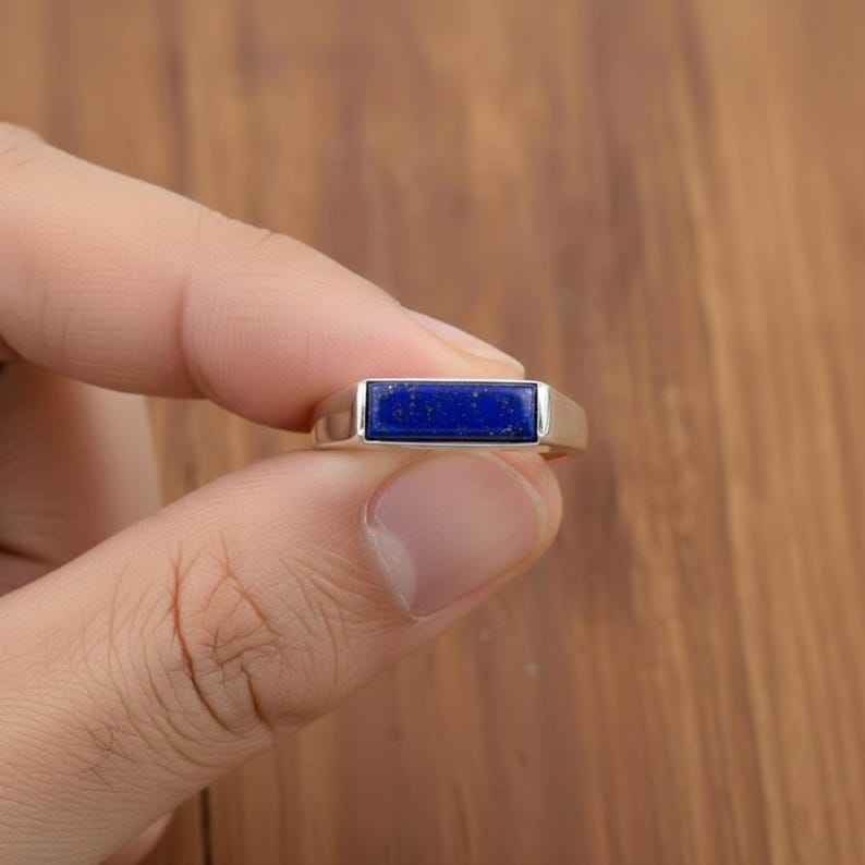 แหวนลาพิส ลาซูลีทำมือ เงินแท้ 925 ดีไซน์มินิมอล ประดับอัญมณี สำหรับผู้หญิง ของขวัญ