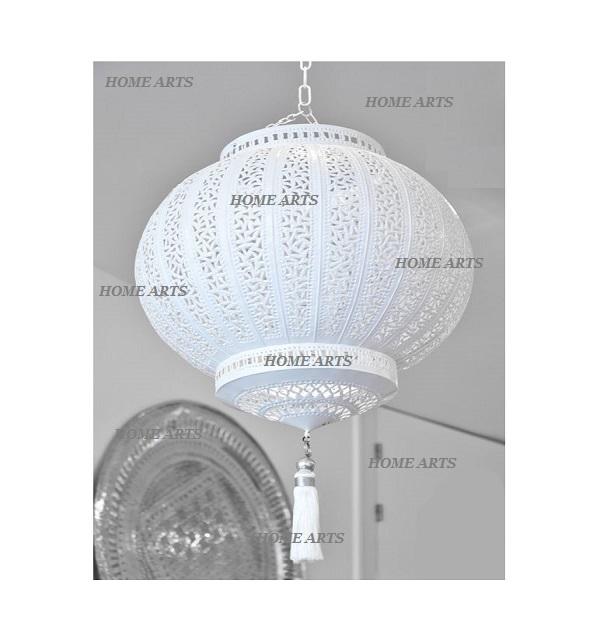 โคมไฟแขวนสไตล์โมร็อกโกทรงกลมคุณภาพระดับดีลักซ์โคมไฟแขวนเหล็กสีขาวดีไซน์เนอร์