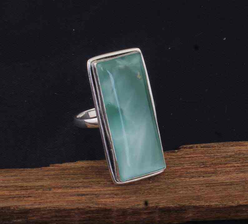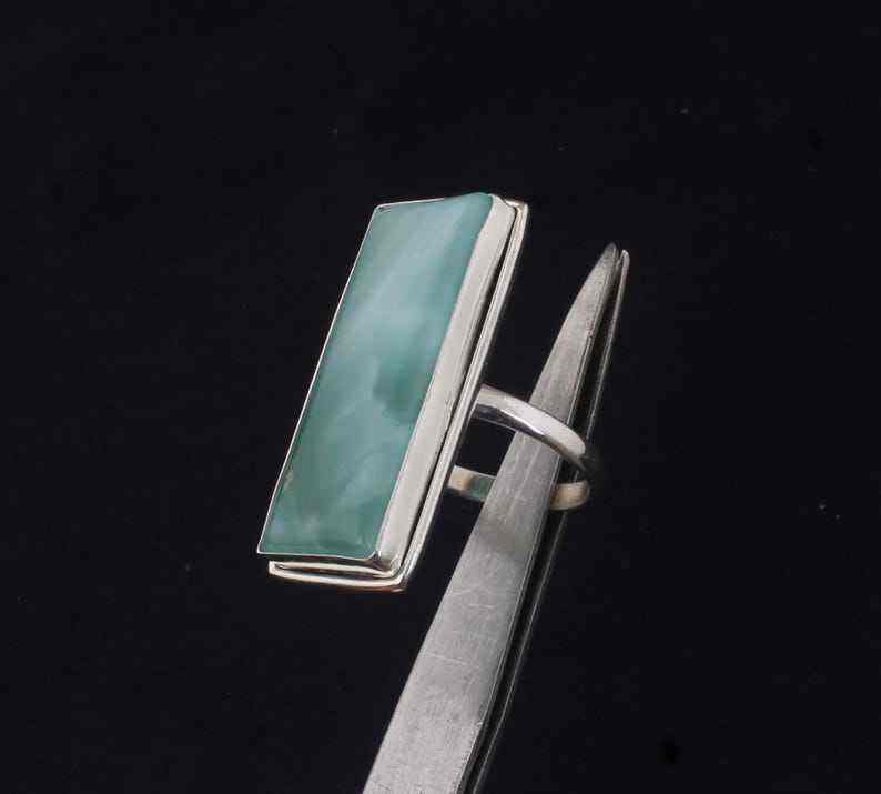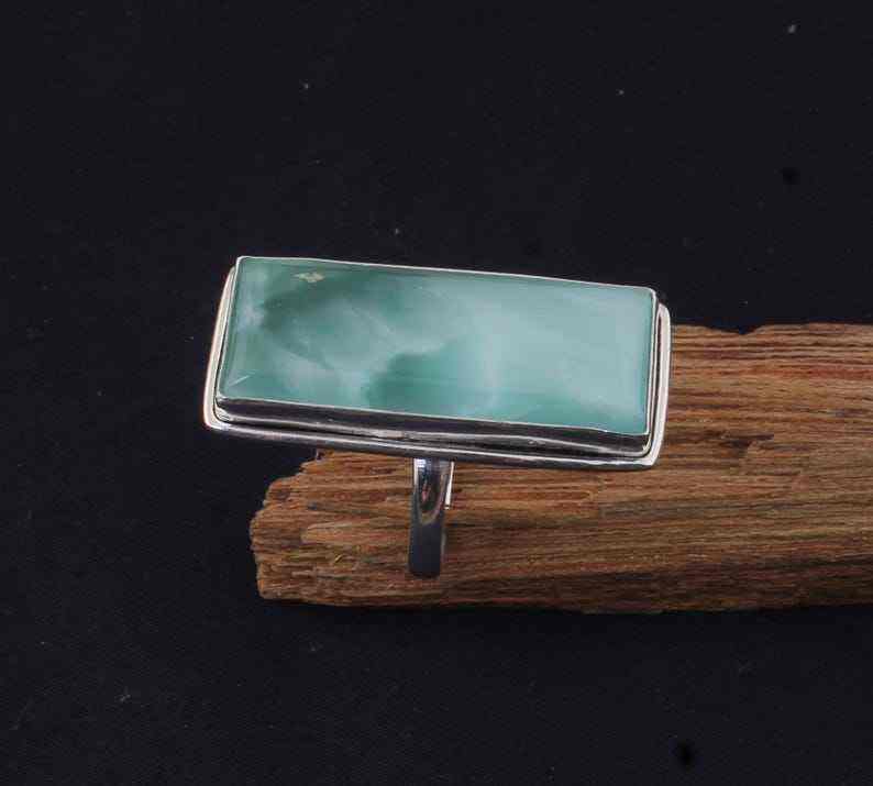 แหวนพลอยลาริมาร์ทำด้วยมือ925เงินสเตอร์ลิงเครื่องประดับที่ไม่ซ้ำกันของขวัญครบรอบ