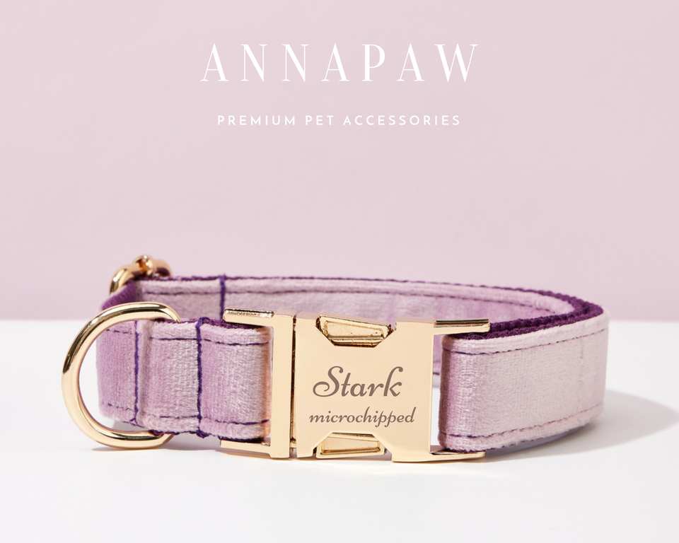 ชุดกำมะหยี่ลาเวนเดอร์ทำมือ พร้อมโบว์ไทสุนัขแบบสั่งทำพิเศษ ปลอกคอและสายจูงสุนัขแบบแฟนซี สำหรับเป็นของขวัญงานแต่งงาน