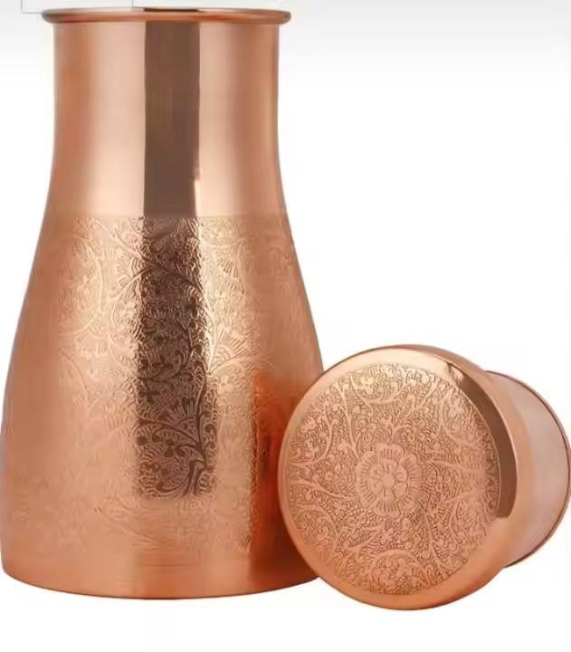 เหยือกน้ำทองแดงบริสุทธิ์กันรั่วซึมทำด้วยมือขนาด1000มล. เหมาะสำหรับดื่มในห้องครัวสำนักงานและของขวัญจากผู้จำหน่ายอินเดีย