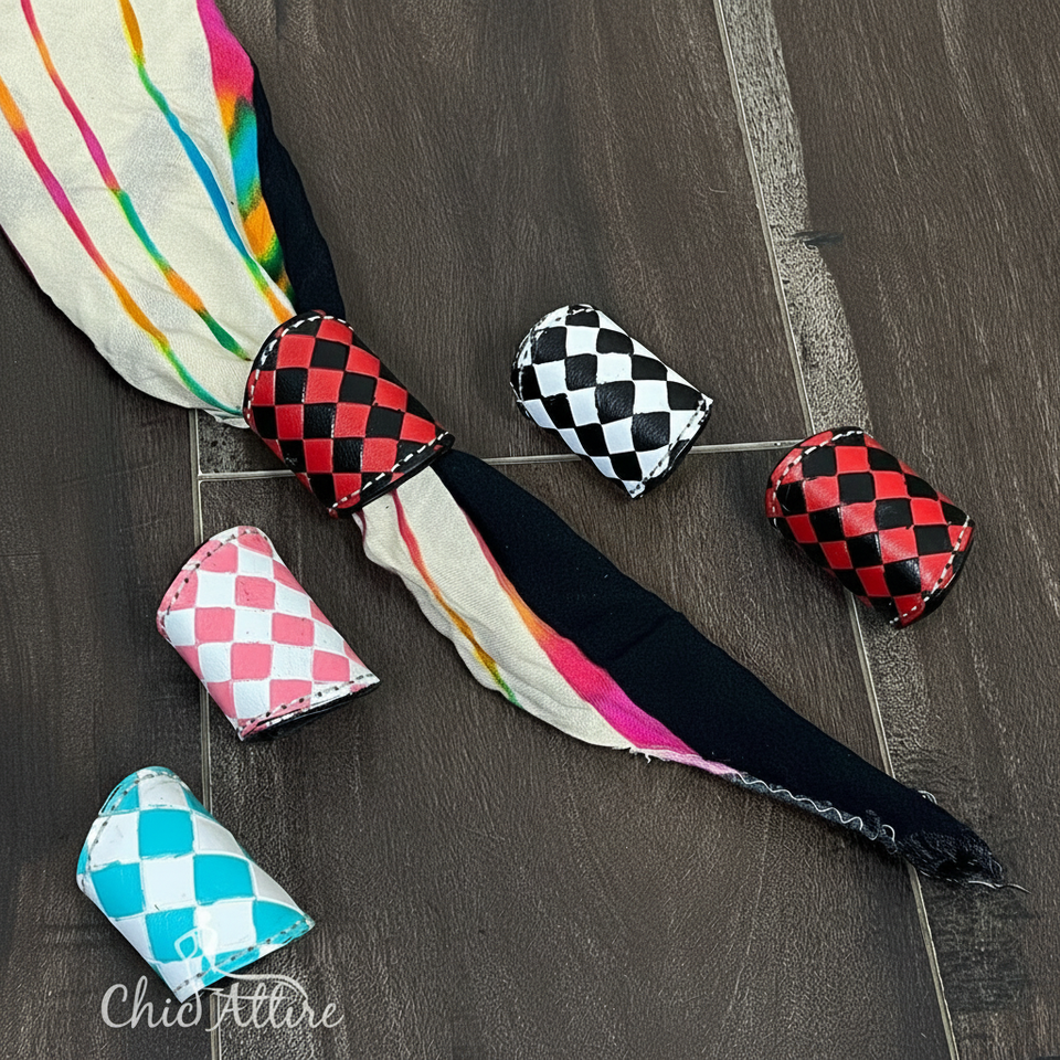 Hand Tooled Checkered Leather Scarf Holders