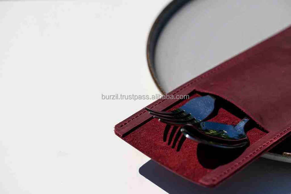ที่ใส่ช้อนส้อมหนังน้ำหนักเบาทนทานงานทำมือสำหรับร้านอาหารอุปกรณ์จัดระเบียบของใช้ในร้านอาหารแบบมีสไตล์