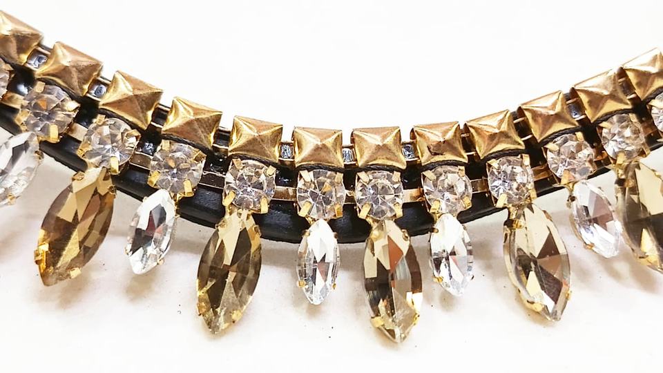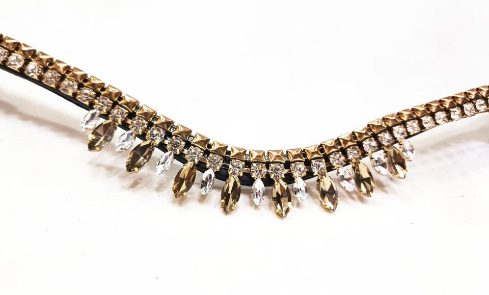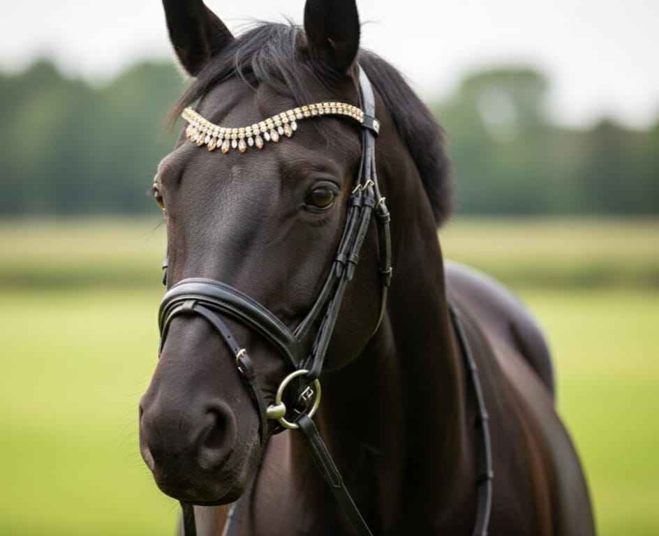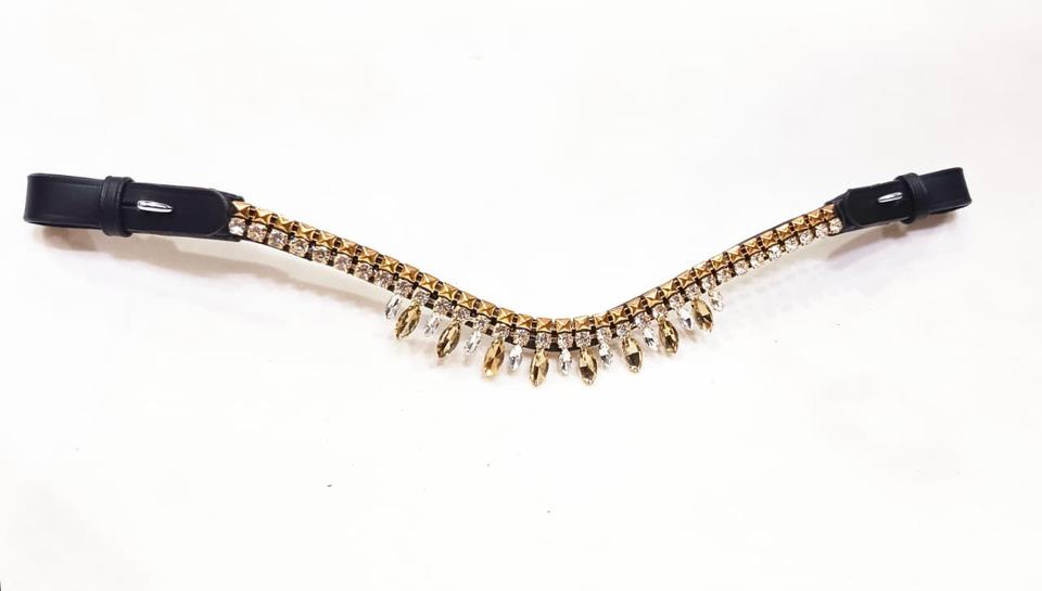 สายคาดศีรษะม้าประดับคริสตัลรูปหัวใจหนังแท้ทำมือ ประดับด้วยทองและเพชรเทียม สำหรับตกแต่งอุปกรณ์กีฬาขี่ม้า