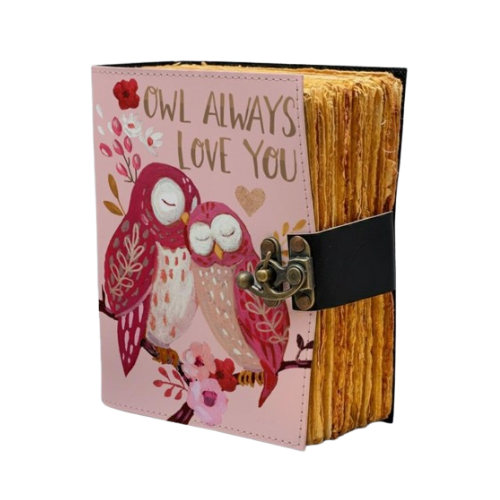 Printed 400 page Owl Love Leather Journal Romantic Handmade Notebook