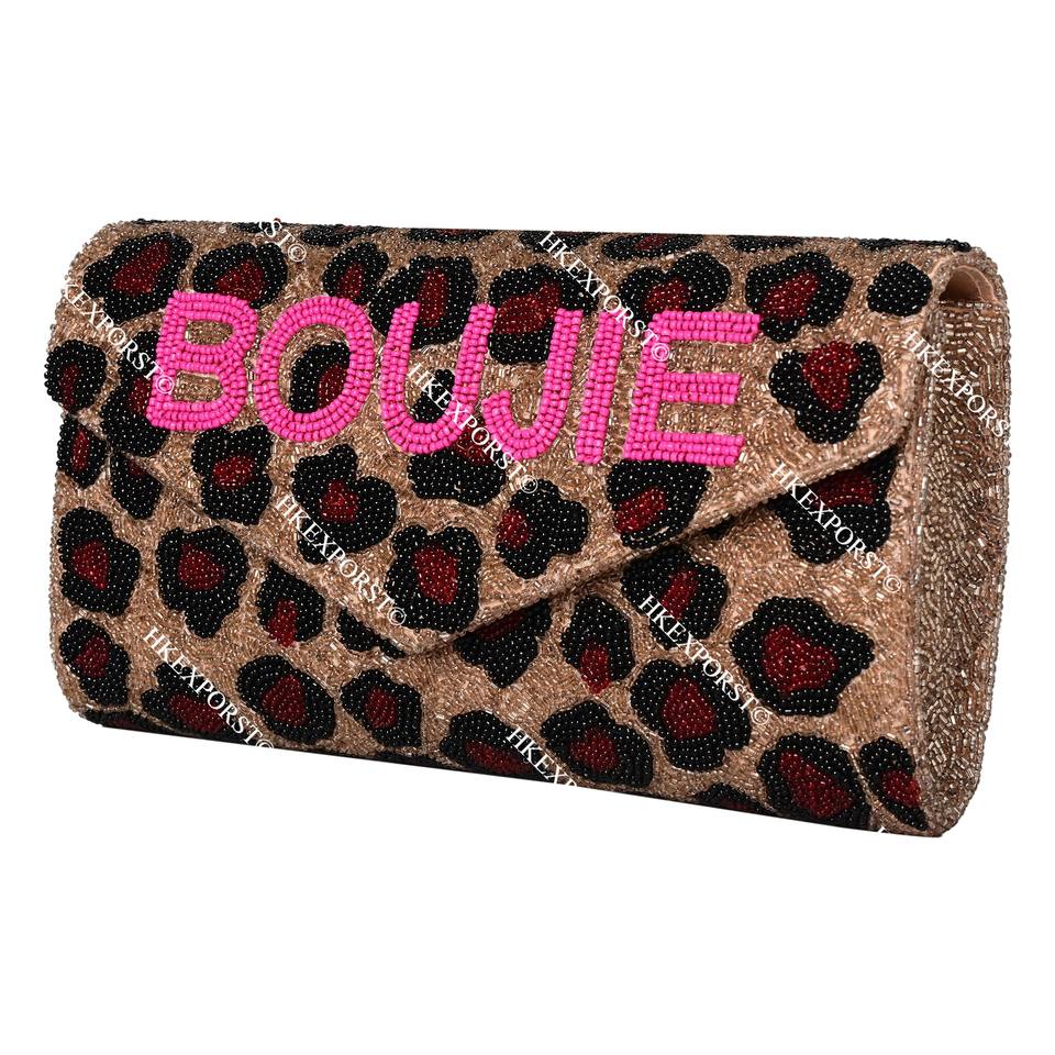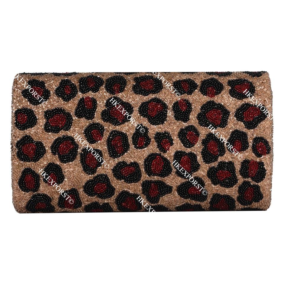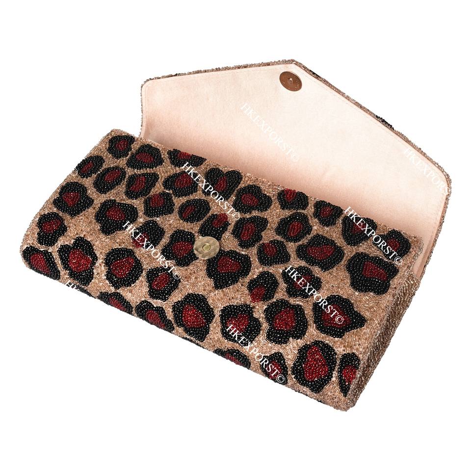 กระเป๋าคลัทช์ลูกปัดพิมพ์ลายเสือดาวทำด้วยมือกระเป๋าแฟชั่นพิมพ์ลายสัตว์ที่ไม่ซ้ำใครสำหรับผู้หญิงกระเป๋าลูกปัดสไตล์โบฮีเมียนเก๋ไก๋